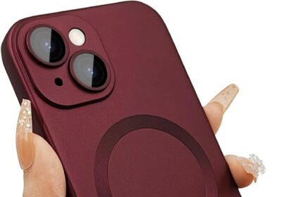 ankofave Magnetic case for iPhone 13 Phone Case for Women/Men, Matte Luxury Soft Metallic Luster Design with Camera Lens Protector, Compatible with Magsafe Case for iPhone 13 6.1″-Wine Red
