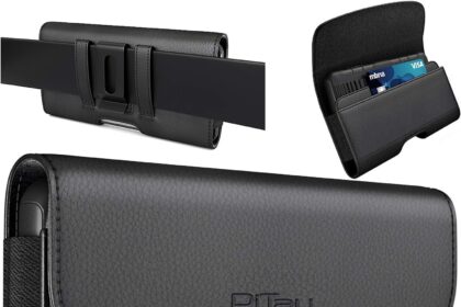 PiTau Phone Belt Case for iPhone 17 16 16e 15 14 13 12 11 Xs X XR (Including Pro Models), Cellphone Holster Clip Pouch, ID/Credit Card Holder, Fits with Otterbox Cover on, Black