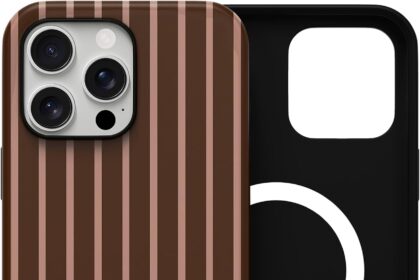Skyseaco for iPhone 16 Pro Case with Magsafe Cute Striped Phone Case, Shockproof Slim Soft TPU and Hard PC Double Layer Protective Cover for Women, Brown