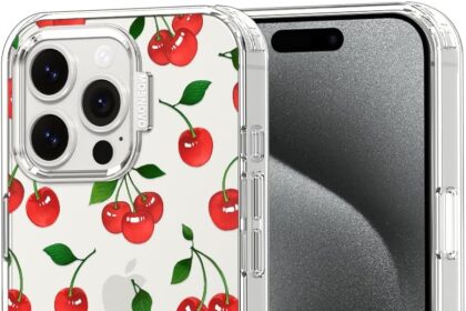 MOSNOVO Case for iPhone 15 Pro Max, [Buffertech 6.6ft Military-Grade Drop Protection] [Anti Peel Off Tech] Clear TPU Bumper Phone Case Cover Design – Cute Cherry