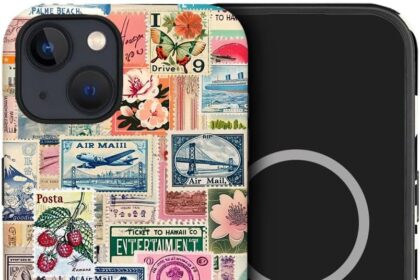 DAIZAG Case Compatible with for iPhone 15, [Compatible with MagSafe],Shockproof Protective Phone Case for Girl Women – Retro Stamp Collage