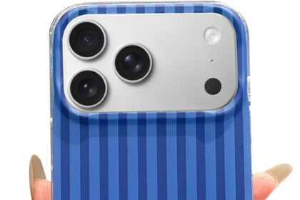 Jmltech for iPhone 17 Pro Max Case Striped Phone Cases Cute Women Girly Trendy Shockproof Slim Soft TPU and Hard PC Protective Cover Navy Blue