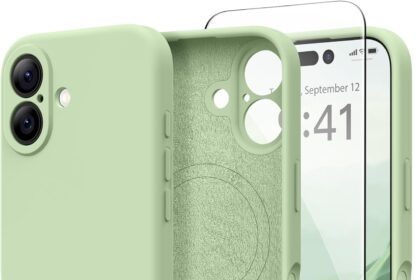 Magnetic for iPhone 17 Case, Compatible with MagSafe, [Full Camera Protection][Screen Protector] Silicone Shockproof Protective Phone Case for iPhone 17 6.3″, Matcha