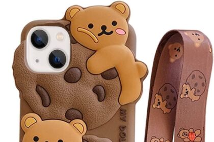 Yatchen Bear Case for iPhone 11,Cute Cookie Bear Kawaii Phone Cases 3D Cartoon Cover with Keychain Strap Lanyard Funny Women Girls Soft Silicone Protector for iPhone 11