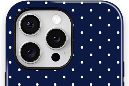 Trendy Cute Hybrid 2 Layer Navy Blue Polka Dot Phone Case for iPhone 14,Navy