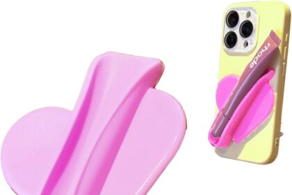 Rookii Heart Shape Lip Gloss Holder Phone Case, Lipstick Holder Phone Case.Silicone Lipgloss Holder, Adhesive Lip Gloss Balm Phone Card Holder for iPhone and Android (purple pink)