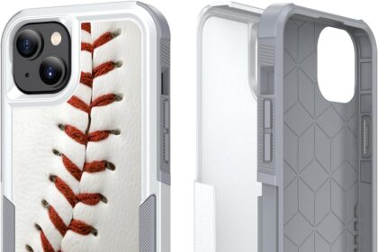 Phone Case for iPhone 15, Baseball Sports Pattern Shock-Absorption Hard PC and Inner Silicone Hybrid Dual Layer Armor Defender Case for Apple iPhone 15 6.1″