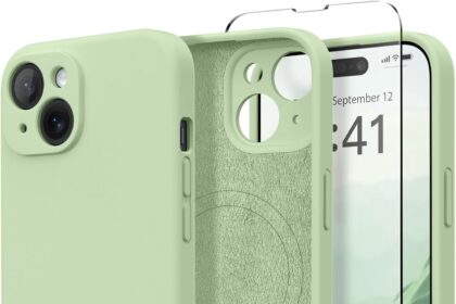 Magnetic for iPhone 15 Case, Compatible with MagSafe, [Screen Protector + Full Camera Protection], Silicone Shockproof Anti-Scratch Protective Phone Case for iPhone 15 6.1″, Matcha