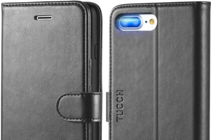 TUCCH Wallet Case for iPhone 8 Plus/iPhone 7 Plus, PU Leather Flip Cover with Card Slot Stand Holder, Magnetic Closure Shockproof TPU Interior Case Compatible with iPhone 7 Plus/8 Plus, Black