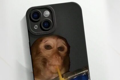 for iPhone12 13 14 15 16Pro Max Monkey Drinking Water Phone Case Silicone TPU (Black, IP 13)