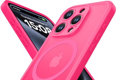 ImpactStrong Magnetic Guard Designed for iPhone 15 Pro Case [Camera Protection] [Military Grade Drop Tested] [Compatible with MagSafe] Slim Translucent Matte Phone Case (6.1″) – Hot Pink