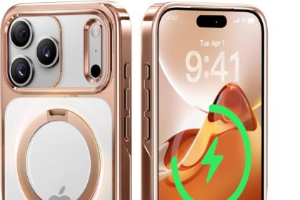 CASEKOO Rose Gold Glossy Designed for iPhone 17 Pro Case with 360 Spin Magnetic Stand [Fit for MagSafe][17FT Military Protection] Slim Polished Frame Titanium Alloy Sturdy Stand 6.3”, Rose Gold