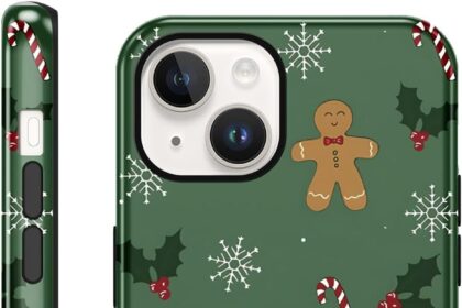 Merry Christmas Phone Case for iPhone 13/14, Cute Case with Candy Gingerbread Man Pattern, Hybrid Durable Shockproof Soft Silicone Cover for Girl Women Men Boys