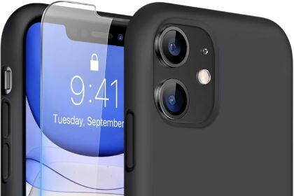 Miracase Designed for iPhone 11 Phone Case, with Screen Protector, Liquid Silicone Gel Rubber Full Body Drop Protection Shockproof Cover Phone Case for iPhone 11 6.1 inch, Black