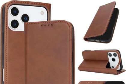 Jaorty Wallet Case Compatible with iPhone 17 Pro,Premium PU Leather Flip Folio Purse with Card Holder,Kickstand Magnetic Closure TPU Shockproof Interior Protective Cover,6.3 Inch,Brown