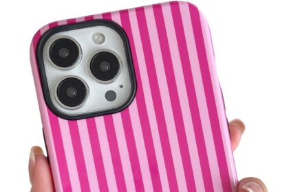 Longlayss Compatible with iPhone 15 Pro Max Case Cute Aesthetic Striped Phone Case for Women Girl Shockproof Slim TPU and Hard PC Protective Cover (Hot Pink)