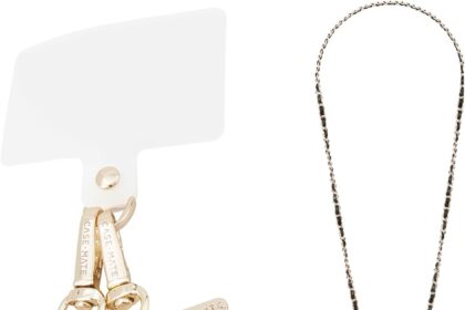 Case-Mate Crossbody Phone Lanyard [Works with All Phones] Hands-Free Strap – Leather Cell Phone Charm – Neck Chain Holder for iPhone 17 Pro Max/16 Pro Max/15/14/13/S26 Ultra – Gold Chain Black Leather