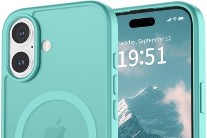 vnnink for iPhone 16 Plus Case,Magnetic Matte Military Grade Drop Protection Translucent Cell Phone Cover – Slim Rugged Durable Shockproof Bumper Cover-Blue Green