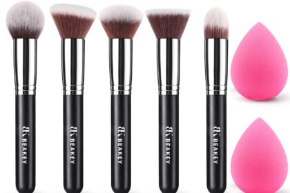 BEAKEY Makeup Brushes Set, Professional Foundation Eyeshadow Concealer Blush Powder Bronzer Applicator, 2 Blender Sponge with Beauty Paper Case