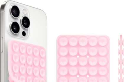 QxbBox Silicone Suction Cup Phone Case Mount Double Sided, Hands-Free Strong Grip Holder for Selfies and Videos,Silicon Sticky Phone Grip with Higher Suction Power for Cell Phone Light Pink