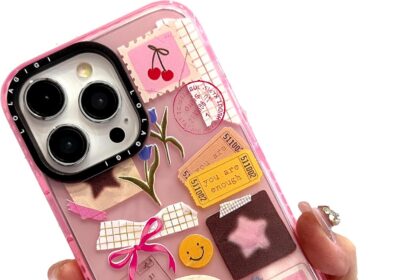 Case for iPhone 13, Cute Pink Art Collage Print Kawaii Design Girly Aesthetic Cartoon Pattern for Women Girls Teens Soft TPU Phone Case,6.1″