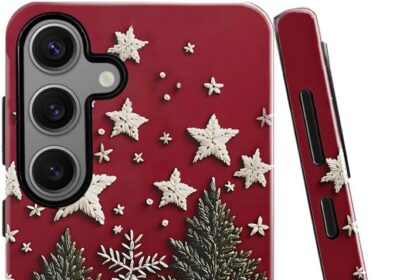 Case for Samsung Galaxy S24,Winter Red Christmas Tree Star Phone Case Drop Resistant Glossy 2 in 1 Solid Dual-Layer Cover for Girl Women
