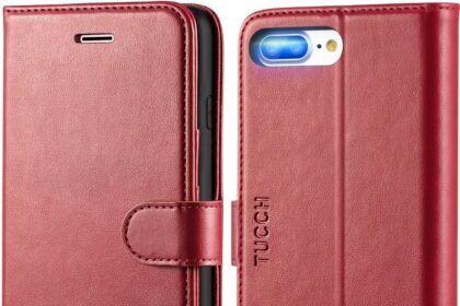 TUCCH Wallet Case for iPhone 8 Plus/iPhone 7 Plus, Magnetic Closure Card Slots Money Pouch, Stand PU Leather Purse Cover Flip Book [TPU Interior Case] Compatible with iPhone 8 Plus/7 Plus, Dark Red