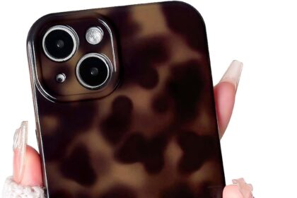 NITITOP Compatible with iPhone 14 Case Cute Stylish Leopard Print Amber Aesthetic Tortoise Design for Women Girls Men Soft TPU Shockproof Protective Cover – Brown