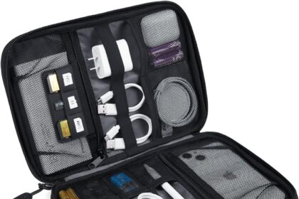 BAGSMART Large Electronics Travel Organizer Case, Tech Accessories Cord Storage Bag for Phone, Power Bank, SD Card, Cables, Black