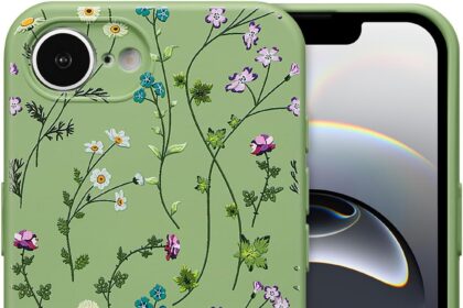 RALEAVO Floral Case for iPhone 16e/iPhone 17e,Liquid Silicone Cover with Cute Flower Branch Pattern for Girls Women Slim Soft Rubber Protective Phone Case for iPhone 16e/17e (6.1″),Green