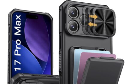 SSLOTSCASE for iPhone 17 Pro Max Case with Card Holder & Kickstand & Slide Camera Lens Cover & Camera Stand & Wallet, Military-Grade Heavy Duty Phone Case Cover for iPhone 17 Pro Max 5G 2025, Black
