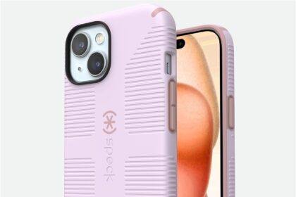 Speck iPhone 15 Case – Built for MagSafe, Drop Protection Grip – for iPhone 15 iPhone 14 & iPhone 13 – Scratch Resistant, Soft Touch, 6.1 Inch Phone Case – CandyShell Grip Soft Lilac/Carnation Petal