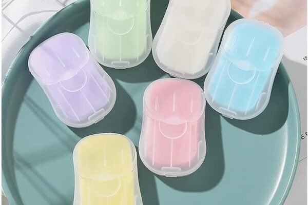 1 Box 50Pcs Blue Portable Soap Sheets, Mini Portable Travel Soap Paper Sheets Disposable Water Soluble Hand Washing Bath Scented Paper Soap, Outdoor Camping Soap and Shampoo, Camping Hiking